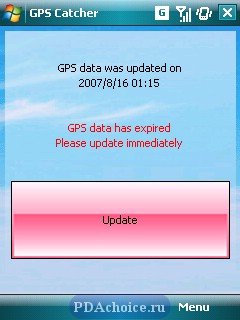 GPS Catcher – Назначение данной программы – помогать GPS-приёмнику устройства быстро стартовать. Программа имеет всего лишь одну большую кнопку UPDATE, дату последнего обновления и трехдневный счетчик актуальности текущих данных.