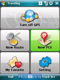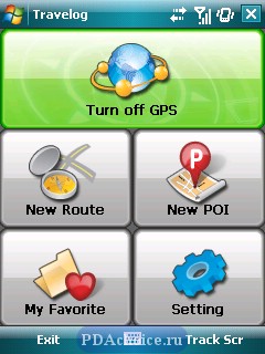 Travelog – Наиболее интересная из трех представленных GPS-программ, она рисует пройденные маршруты, позволяя в дальнейшем экспортировать их в формат KMZ для использования в Google Earth, чтобы накладывать пройденный маршрут на реальные карты. К пройденным точкам маршрута можно прикреплять фотографии, делать заметки, все это также вместе с маршрутом можно выкладывать в Интернет. Есть и обычные для устройства с GPS возможности, например - измерять скорость движения, пользоваться компасом, определяющим направления сторон света по спутникам, высоту над уровнем моря.
