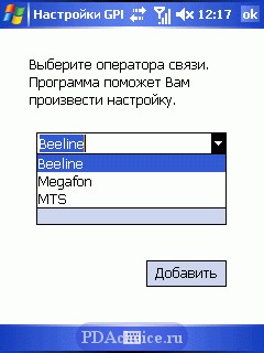 А в «Программах» находится приложение для автоматической настройки GPRS. Очень удобно. Нужно лишь выбрать своего оператора сотовой связи.