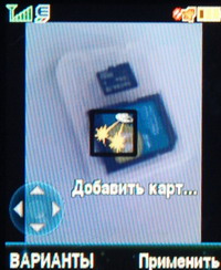 Камера. Активировать ее можно либо кнопкой на корпусе, либо верхней направляющей навигатора, либо через меню. Снова необоснованное излишество. 1,3 мегапиксельная камера, установленная в телефоне, снимает весьма посредственно. На изображении появляется большое количество шумов. Максимальный размер снимка 1280 х 1024, есть восьмикратное увеличение. Но поверьте, чем больше приближаете объект, тем хуже потом понять, что снято на фотографии. Пример фото карты памяти. Так она выглядит на экране мобильника.