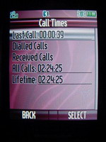 Последние звонки. Здесь можно найти списки входящих, исходящих вызовов (те вызовы, с которыми разговор состоялся, помечены галочками), таймеры разговоров, а также сеансы GPRS и их стоимость (если функция предварительно настроена).