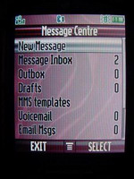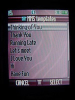 Сообщения. Из-за большого экрана набирать текстовые сообщения одно удовольствие – много строк, да и шрифт немаленький. Интересно, что буква, которая еще не введена (например, вы пролистываете "пятерку" в этот момент), подсвечивается синим, а не черным, как предыдущий шрифт, а буквы, которые могут быть подставлены с помощью iTap (аналог T9) – серым. Вроде бы мелочь, а приятно. Шаблоны для SMS называются "быстрые заметки", а для MMS – "шаблоны". Для SMS их придется забивать самому, а для MMS они уже забиты – их 10 штук. В телефон также встроен E-mail клиент.