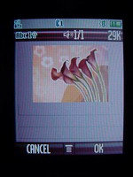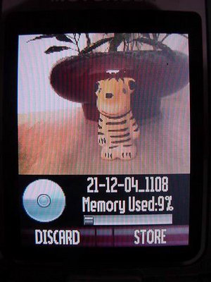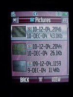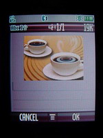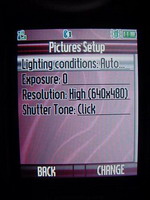 Камера, как и полагается камере имиджевого телефона, не очень продвинутая – максимальное разрешение снимков 640х480 точек. Из "наворотов" есть настройка светового баланса, выбор звука затвора (5 разных), экспозиция (баланс белого) и таймер задержки спуска затвора. И все. Даже нет возможности поснимать видео. С одной стороны, камера на редкость аскетичная, но, с другой стороны, зачем делать лишние навороты, усложняющие управление? Вот если бы в камере был бы хотя бы мегапиксель, тогда другое дело – настройки оказались бы недостаточными для такой камеры.