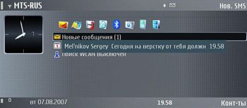 Ну а теперь о самом главном, принципиальном отличии E90 от всех предыдущих «девятитысячников» Nokia. В этих устройствах всегда было предусмотрено два режима работы: собственно коммуникатор (корпус открыт), и просто телефон (корпус закрыт). В телефонном режиме (использовалась платформа Series 40) функциональность была ограничена: можно было позвонить, можно было набрать SMS, выставить профиль звукоиндикации... И все, пожалуй. Остальные функции были доступны лишь на основном дисплее.
