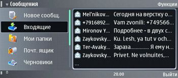 В E90 программная платформа едина как для внутреннего, так и для внешнего экрана. Все приложения (кроме основной камеры — она запускается, лишь когда корпус закрыт) можно использовать как в режиме коммуникатора, так и в режиме телефона. Здесь «работает» одна из ключевых особенностей платформы S60 3rd Edition — масштабируемый интерфейс. Когда крышка открывается, система просто растягивает рабочее пространство с 320х240 до 800х352 точек, переориентирует функциональные элементы интерфейса и расставляет иконки в новом порядке. Кстати, «перерисовывает» все это система на удивление шустро — сказывается довольно мощная аппаратная начинка E90.