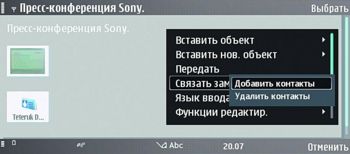 Набор стандартных приложений — привычный по топовым смартфонам Nokia. Сюрприз только один: любопытная утилитка под названием «Активные заметки». К текстовой информации она позволяет добавлять мультимедийный контент (фотографию, видеоклип, диктофонную запись) и PIM-данные. Очень удобно, эффективно и наглядно. Но самое главное: к заметке можно «привязать» контакт из записной книги. Каждый раз, когда вы набираете номер, на экране появляется окошко с нужным текстом — гениально!