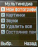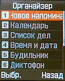 Дополнительные функции представлены ежедневником, мобильными играми и Интернетом, а также VGA-камерой. Ежедневник простой, он включает в себя три будильника, калькулятор, конвертер величин, таймер, секундомер, возможность просмотра календаря за месяц и списка дел. В этом пункте также находится простенький диктофон с возможностью записи речи продолжительностью до 25 минут. Есть WAP-браузер версии 2.0 и две предустановленные игры: Snow Ball Fight и Bubble Smile. Еще в этом разделе хранятся все загруженные файлы, которые в данный момент находятся в памяти телефона: картинки, фото, звуки – без разбиения на группы по типу или дате загрузки. Так как память в терминале распределяется динамически, их придется периодически удалять, особенно, если вы собираетесь использовать фотокамеру. Ведь Е420 располагает всего двумя мегабайтами встроенной памяти, расширить которую невозможно. Правда, много места кадры, сделанные в VGA-разрешении, не занимают.