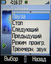 Увлекающимся меломанам, которые не могут обходиться без любимых музыкальных сборников данный терминал покажется лакомым кусочком и наверняка поможет для собственных творческих изысканий. В аппарате предусмотрен отдельный раздел «Музыка», с доступом к MP3-плееру и FM-приемнику. Программный плеер способен работать в двух режимах воспроизведения (проигрывать записи по порядку либо вразнобой) и кроме этого оборудован системой трехмерного звука. Он может работать также и в фоновом режиме, отображая на дисплее названия прокручиваемой дорожки, хотя, к большому сожалению, при наборе SMS сообщения либо запуске Java-игры, звук выключается. Плеер может воспроизводить музыкальные файлы MP3 непосредственно с карты памяти, но из-за недоработок в программном обеспечении с этим тоже могут возникнуть проблемы. В наилучшей версии прошивки все эти проблема вполне решаемы.
