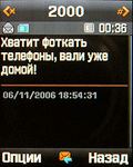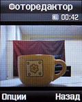 Не лучшим образом сделана и штатная фотокамера. Ее матрица имеет фактическое разрешение 1,3 мегапикселя, что маловато по современным рамкам. Максимальное разрешение снимков при этом составляет всего 1280х1024 пикселя. Фотографии годятся для просмотра на дисплее мобильного телефона, но никак не для их копирования на компьютер или печати. При этом камера обладает практически всем тем арсеналом настроек, которые были присущи старшим ее вариациям: можно выбрать режим съемки, разрешение снимка, качество, тип экспозамера, баланс белого и светочувствительность. Кроме того, есть эффекты и рамочки. Теоретически это выглядит как издевательство над теми, кто мог бы приобрести аппарат, однако на практике значительно улучшает качество получаемых кадров. При правильно установленных настройках аппарат выдает снимки зачастую лучшего качества, чем полученные с помощью телефонной камеры без установок баланса белого и с худшим автофокусом, но с большим разрешением матрицы.
