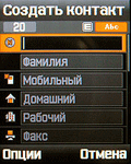 Адресная книга представлена в классическом для этого производителя варианте и рассчитана на тысячу ячеек. При заполнении информации об абоненте можно внести имя, фамилию, номер мобильного, домашнего и рабочего телефонов, факс, дополнительный номер и адрес электронной почты. Кроме того, есть возможность присваивать контакту картинку, мелодию звонка, определять его в одну из групп и даже добавлять небольшой текстовый комментарий. Так же, как и в старших моделях, личная мелодия превалирует над установленной для группы.