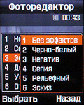 А вот видео действительно получается крайне бюджетным, дерганым. Ролики сохраняются в форматах MP4 и 3GP с максимальным разрешением 176х144 точки. Поддерживаются те же эффекты, что и в режиме фотосъемки, но смотрятся они намного хуже – при изменении объекта съемки картинка распадается на «квадратики», для наведения фокуса заново требуется около двух секунд.