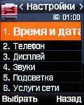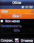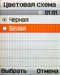 Настройки дисплея не предполагают регулировки контрастности. Вместо этого можно выбрать фоновую картинку, стиль отображения главного меню, один из вариантов цветового решения меню (черное и белое), длительность действия подсветки и цвет диода внешнего экрана, а также настраивать вид дисплея в режиме набора. Кроме того, доступны выбор одного из трех размеров шрифта, цвета текста и цвета фона. Дополнительным плюсом является возможность регулировки яркости экрана – при изменении ее значения меняется общий вид, регулировка очень чувствительная и качественная.