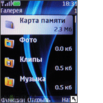 Очередность отображения пунктов меню можно задать по собственному желанию. Можно изменить и внешний вид значков меню и цветовую схему, применив одну из предустановленных тем (две темы находятся в памяти телефона, еще три темы можно найти на карте памяти, которая идет в комплекте с аппаратом), либо загрузить дополнительные темы самостоятельно. Курсор передвигается по меню довольно быстро, практически без задержек. Если же перейти на сменную карту памяти, паузы при открытии папок и файлов увеличиваются значительно.