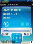 Плеер в телефоне аналогичен музыкальным моделям Nokia 5200 и 5300. Качество воспроизведения звука как через наушники, так и через динамик находится на высоком уровне. Эквалайзер содержит пять предустановленных режимов — Нормальный, Поп-музыка, Рок, Джаз и Классика. Два режима пользователь может настроить и по собственному желанию. Понравившийся список воспроизведения можно сохранить. Большим плюсом есть возможность воспроизведения через беспроводную гарнитуру с поддержкой стандарта A2DP.