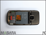 Во многом, благодаря цветовой комбинации (в нашем тесте принимал участие смартфон темно-коричневого цвета) и сглаженным формам, смартфон Nokia E65 вызывает ощущение одомашненности. При первом взгляде кажется, что аппарат не отличается прочностью, однако, это совсем не так. В основе корпуса лежит металлический «скелет». Из пластика выполнен пластиковый ободок по бокам аппарата, обратная сторона корпуса и задняя крышка отсека аккумулятора. Такое усиление корпуса не могло не сказаться на общем весе аппарата (115 г), который хорошо ощутим в руке.