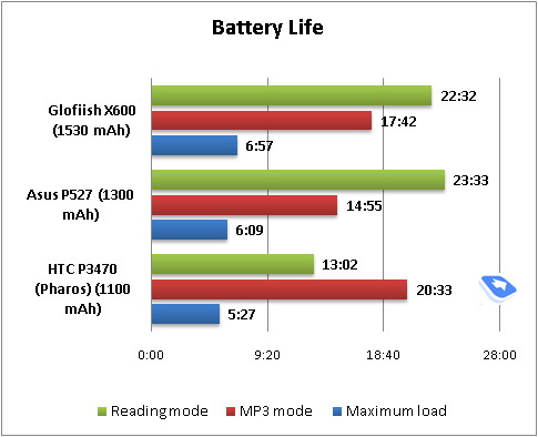 В коммуникаторе используется Li-Ion аккумулятор емкостью 1300 мАч. Это стандартное значение для многих коммуникаторов. По времени автономной работы в тестовых режимах модель максимально близка к далеко не лучшему среди аппаратов Asus коммуникатору P526. Впрочем, на фоне конкурирующих решений от разных производителей даже такие показатели оказываются отличными. Так что по времени работы от одного заряда аккумулятора P527 сравним с ближайшими конкурентами.