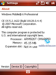 Аппарат работает под управлением ОС Windows Mobile 6 Professional. О стандартных программах, входящих в состав этой операционной системы, вы можете прочитать в соответствующем обзоре на нашем сайте.