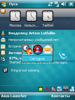 Набор приложений коммуникатора типичен для продуктов Asus, в данном случае он почти полностью совпадает с таковым для флагмана Asus P750. В нашем образце З527 не имел разве что программ Asus Alarm, WorldCard Mobile и Мои Секреты, все остальные приложения полностью одинаковы. Ниже мы приводим описания программного набора Asus P750, благо, программы в нем совершенно аналогичны установленным в P527. Если вы читали обзор Asus P750, можете смело пропускать раздел Программное обеспечение в данном обзоре.