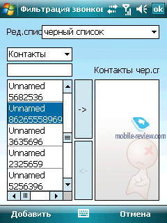 Call Filter (Фильтрация звонков) – приложение для созданий черного и белого списков контактов. Простая в настройке программа с понятным интерфейсом. В одном поле располагаются контакты из вашей адресной книги (на выбор: контакты из журнала звонков, произвольный номер, контакты с большим числом сообщений и анонимные), в другое вы переносите те, которые хотите добавить в белый или черный список (в зависимости от текущих настроек). При активации режима белого списка контакты, не входящие в него, при звонке будут слышать уведомление о недоступности абонента. Аналогично, при активации черного списка все входящие в него абоненты будут слышать эту информацию. Поступающий звонок просто сбрасывается, при этом вся информация о звонке (номер абонента, имя, время звонка) записывается в обыкновенном режиме и доступна вам для изучения.