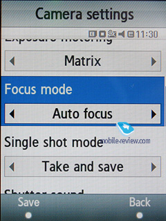 Камера имеет автофокус, отдельных настроек замера по центральной точке или всему снимку нет. Появился режим определения лица (Face Detection), в нем на снимке определяется лицо (портретная съемка), и аппарат автоматически настраивает все параметры под этот тип съемки. На практике разницы между этим режимом и обычными настройками мы не заметили совсем. Баланс белого выставлялся на автомат по умолчанию, но можно в ручном режиме выбрать Daylight, Incandescent, Fluorescent, Cloudy, Sunset. Количество режимов интересно для тех, кто любит копаться в настройках камеры, больше подходит для цифрового аппарата, чем для телефона, где основной принцип иной (достал и сфотографировал).