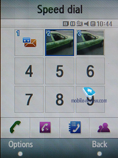 Ввод информации осуществляется с экранной клавиатуры, которая максимально похожа на обычную клавиатуру телефонов. Изображены кнопки, на каждой нанесено несколько символов. Чтобы выбрать нужную букву, вам приходится нажимать несколько раз на клавишу. Многие зададутся вопросом, в чем прелесть сенсорного экрана, если нет QWERTY-клавиатуры. Скорость ввода лучше, но не намного. В отличие от Samsung P520, в F490 количество ошибочных нажатий сведено к минимуму. Сенсорный экран удобнее при работе в меню, но отнюдь не при наборе текста.