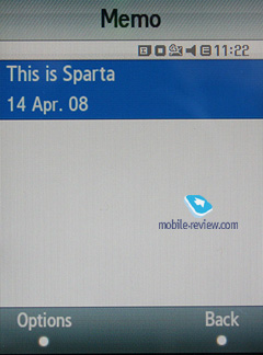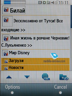 Существует ограничение на размер MMS-сообщения в 295 Кб, а размер принимаемого сообщения не ограничен. Из дополнительных настроек надо отметить возможность отклонения рекламных сообщений, выбор типа приема сообщения в роуминге и в домашней сети. Сообщения сохраняются в общей динамической памяти, то же и для электронной почты.