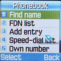 Телефонная книга. Попасть в нее можно, только нажав на правую функциональную клавишу в режиме ожидания, или через главное меню. В памяти аппарата хранится до 500 имен. Каждому абоненту можно присвоить до пяти телефонных номеров (можно выбрать тип номера: мобильный, рабочий, домашний) и адрес электронной почты (до 50 символов), ввести заметку, выбрать мелодию звонка и картинку. Абонента можно также добавить в одну из 5 групп.