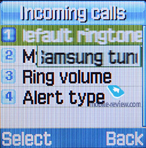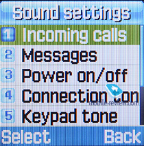 Настройки звука. Здесь собраны все настройки, связанные со звуковыми установками аппарата. К сожалению, в телефоне нет профилей, поэтому все настройки придется делать через это меню. В качестве типа сигнала можно установить только вибро, только мелодию, вибро, а потом мелодию.