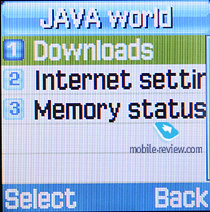 Java world. Аппарат поддерживает Java MIDP 2.0, под приложения отведено 1.8 Мб памяти (это общий стек памяти для всех приложений). В аппарате предустановлена одна игра – BubbleSmile. Установка дополнительных приложений возможна только через WAP.