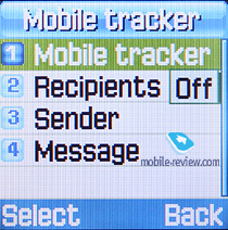 Mobile Tracker – вы указываете номер телефона, на который будут отсылаться сообщения при смене SIM-карты. В получаемом сообщении вы увидите номер SIM-карты, использованной в вашем аппарате. Войти в данный раздел можно только по паролю, что предотвращает отключение функции информирования без знания пароля. При установке новой SIM-карты сообщение отсылается только один раз, каждая последующая смена карты вызывает новое сообщение. Интересная возможность, которая в какой-то мере повышает шансы обнаружить телефон, если его украли.