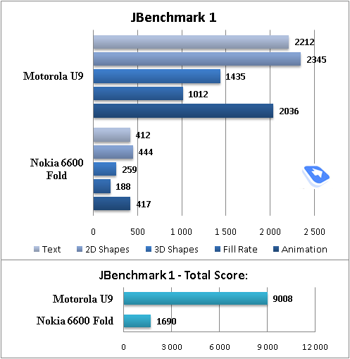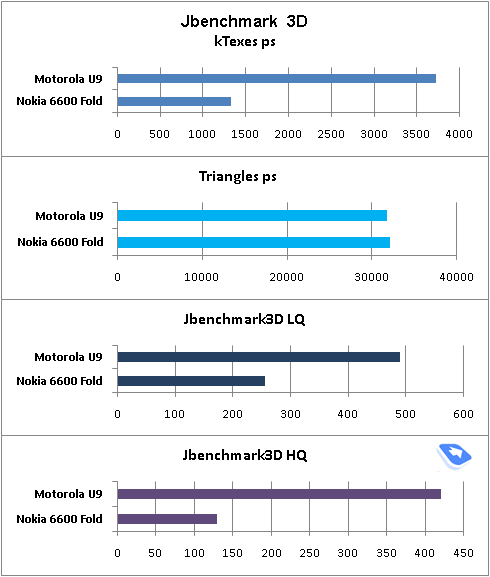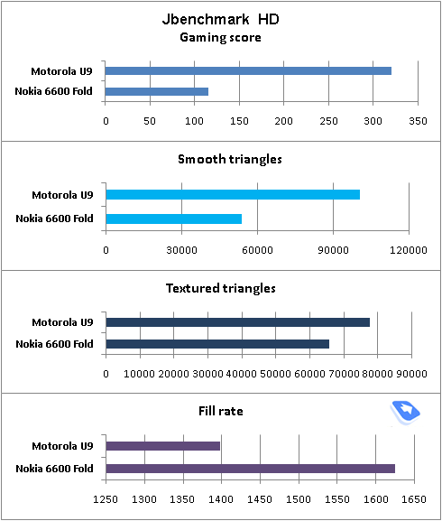 Аппарат демонстрирует типичные для своего поколения телефонов результаты, нет никаких особенностей. По сравнению с аппаратами от Sony Ericsson производительность этого решения низка.