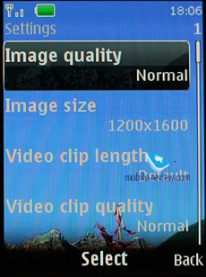 Модуль камеры не претерпел никаких изменений по сравнению со многими недорогими моделями компании, он имеет 2-мегапиксельную CMOS-матрицу без автофокуса. Есть выбор между тремя типами качества съемки – высокое, обычное или базовое (отличаются степенью сжатия). Фотоснимок можно сделать в шести разрешениях. Максимальное разрешение – 1600х1200, далее идут 960х1280, 600х800, 480х640, 240х320 и 120х160. Вспышку можно только включить или отключить. Как фонарик светодиод использовать нельзя. Из эффектов присутствуют оттенки серого, сепия и негатив. Камера оборудована восьмикратным цифровым зумом, но снимки при максимальном приближении не отличаются высоким качеством и четкостью.