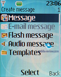 Кроме этого, телефон поддерживает flash-сообщения, когда текст будет выводиться сразу на экране телефона получателя. Есть и звуковые сообщения: вам предлагается надиктовать его через диктофон, продолжительностью не более 1 минуты, и отправить данную запись по MMS. В телефоне имеются шаблоны сообщения, также возможно составлять собственные шаблоны.
