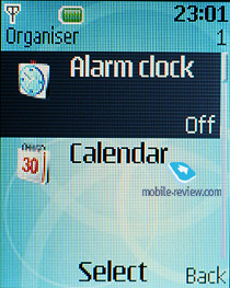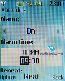 Органайзер. В телефоне имеется один будильник, он может работать как ежедневно, так и по выбранным дням недели. Для него можно выбрать сигнал и назначить время повтора.