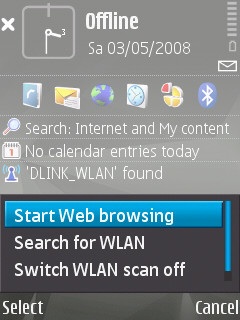 Теперь перейдём к рассмотрению взаимодействия с Wi-Fi. Для выхода в интернет посредством Wi-Fi пользователю нужно нажатиями джойстика выбрать пиктограмму с изображением антенны, затем определить желаемую точку доступа и - набрать адрес сайта. К слову сказать, вводить URL ужасно неудобно - клавиши N82 узкие и маленькие, и вдавливать их приходится не подушечкой пальца, а ногтём, что чрезвычайно замедляет процесс. При каждом выходе в интернет на экран выводится сообщение “Сreate WLAN connection in offline mode?”, смысл которого так и остался для меня загадкой. Скорость загрузки сайтов у N82 существенно ниже, чем у моего компьютера, подключённого к той же точке доступа - однако она всё же многократно превышает скорость GPRS-соединения.