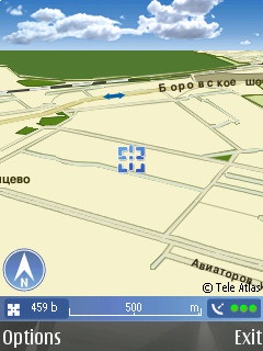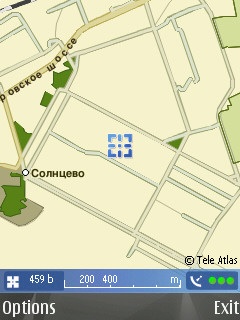 Важнейшей “фичей” рассматриваемого телефона является GPS; настало время рассказать и о нём. Запуск приложения Maps осуществляется нажатием одной кнопки; “раскочегарился” GPS достаточно быстро - минуты за полторы. В режиме навигации увеличение масштаба карты осуществляется при помощи клавиши “звёздочка”, уменьшение - при помощи клавиши “решётка”, перемещение курсора по карте производится джойстиком.