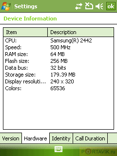 - Процессор: Samsung SC32442 c тактовой частотой 500 МГц