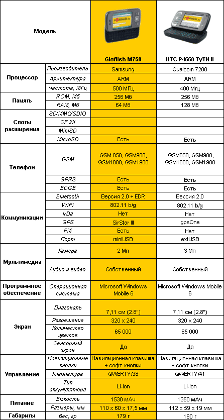 Новинку от компании E-Ten грех было не сравнить популярным QWERTY-коммуникатором P4550 TyTN II от компании HTC. Оба устройства одинаково позиционируются и обладают схожими характеристиками.