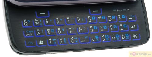 Производители сделали ставку на высокие чувствительные способности пользователей — каждый элемент имеет несильно ощутимую окантовку, которая подсвечивается в темноте. Благодаря этому и происходит разграничение. Обладателям крупных пальцев, и любителям быстрого тактильного набора придется несладко. Осложняет набор то, что обозначения кириллицы и латиницы выполнены одним цветом.