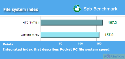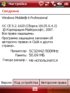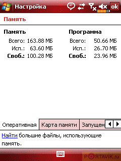 Как мы уже говорили в первом знакомстве, наличие всего 64 Мб оперативной памяти несколько удивляет, учитывая дату релиза Glofiish M750 (май 2008 г.). Тем более в таком функциональном устройстве. Соответственно, пользователю из них остается еще меньше. Объем ПЗУ составляет 256 Мб и может быть расширен в перспективе до 32 Гб — поддержка microSDHC-карт имеется.
