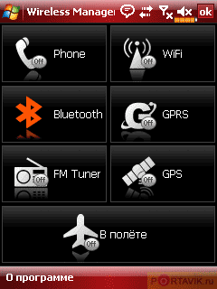 Wireless Manager — быстрая активация/деактивация беспроводных подключений, GPS, FM-тюнера и др. Крупные значки для нажатий пальцами.