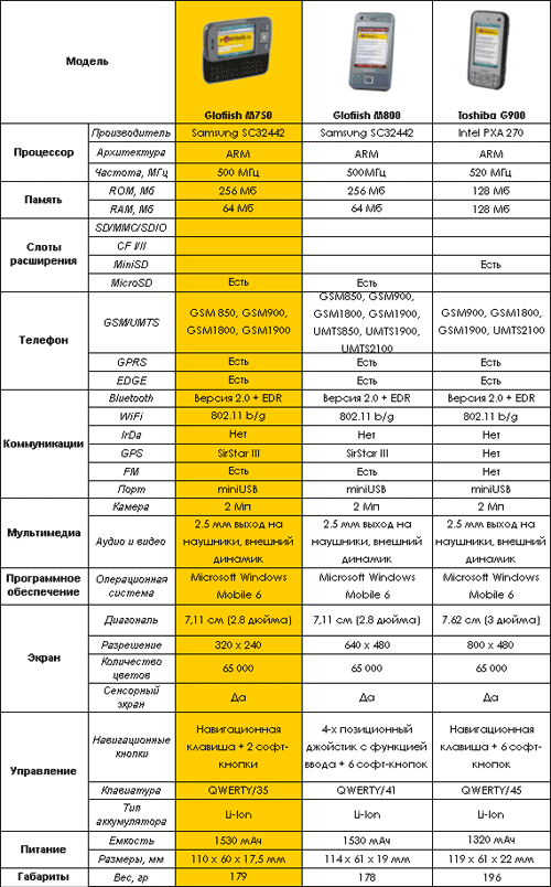 Тест мобильного телефона Тест: Glofiish M750 в сравнении с подобными устройствами
