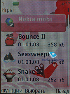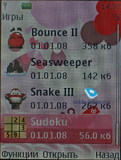 В телефоне предустановлено несколько игр, это Snake III, Bounce Tales, Sea Sweeper, Sudoku.