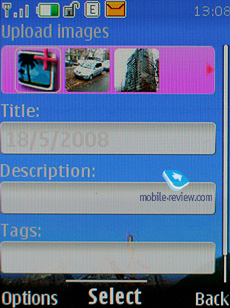 В телефоне около 29 Мб памяти, доступной пользователю. Слот для карт MicroSD расположен под аккумуляторной крышкой, поддерживается «горячая» замена карт. Объем карт, которые могут использоваться с аппаратом, не ограничен, мы пробовали работать с картой на 8 Гб, никаких проблем не было.