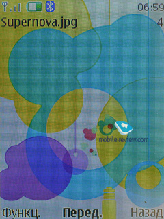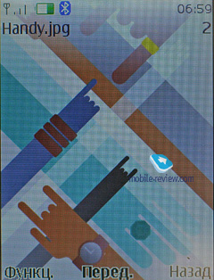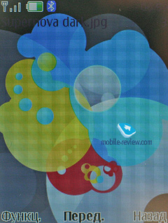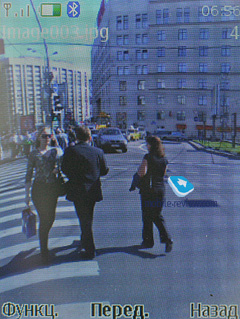 На солнце картинка видна (TFT), помогает защитное стекло, так как оно тонированное. Другое дело, что иногда уже оно начинает бликовать, тогда приходится искать комфортный угол. К сожалению, за счет относительно небольшой диагонали экрана говорить о максимальном комфорте вне помещения нельзя, это всегда компромисс. То же касается и всех телефонов других производителей с диагональю 2 дюйма.