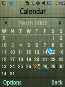В памяти телефона можно сохранить до 100 событий, это один тип событий – встреча. Существуют и другие, например, годовщина, праздник, таких записей может быть по 50 каждого типа. В памяти также может быть по 20 записей, характеризуемых как важные, и также личных записей.