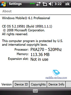 Коммуникатор работает под управлением Windows Mobile 6.1 Professional. О стандартных программах, входящих в состав этой операционной системы, и об обновлении ОС вы можете прочитать в соответствующих материалах на нашем сайте.