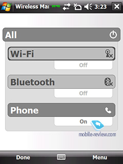 Для работы с беспроводными интерфейсами используется стадартная программа из набора ОС Windows Mobile.