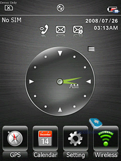 Smart Touch. Оболочка для экрана «Сегодня» от компании Gigabyte. Удивительно, но на оболочку от HTC она не похожа, что уже радует на фоне множества копирующих друг друга решений. По большому счету, функциональность Smart Touch сводится к возможности быстрого запуска приложений или настроек сразу после включения экрана, а также просмотра времени, прогноза погоды или проигрывания музыки из этого же экрана.