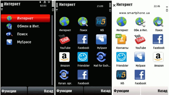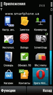 Схема расположения иконок главного меню практически идентична во всех трех смартфонах, за исключением небольшого «но» - в смартфонах Nokia 5230 Xpress Music и Nokia 5530 Xpress Music реализовано приложение Ovi, тогда как в Nokia 5800 Xpress Music его нет. Объяснить, впрочем, это несложно – производитель сервис Ovi начал продвигать относительно недавно, потому приложение установлено только в последней из моделей. Уверен, дополнительные комментарии излишни.